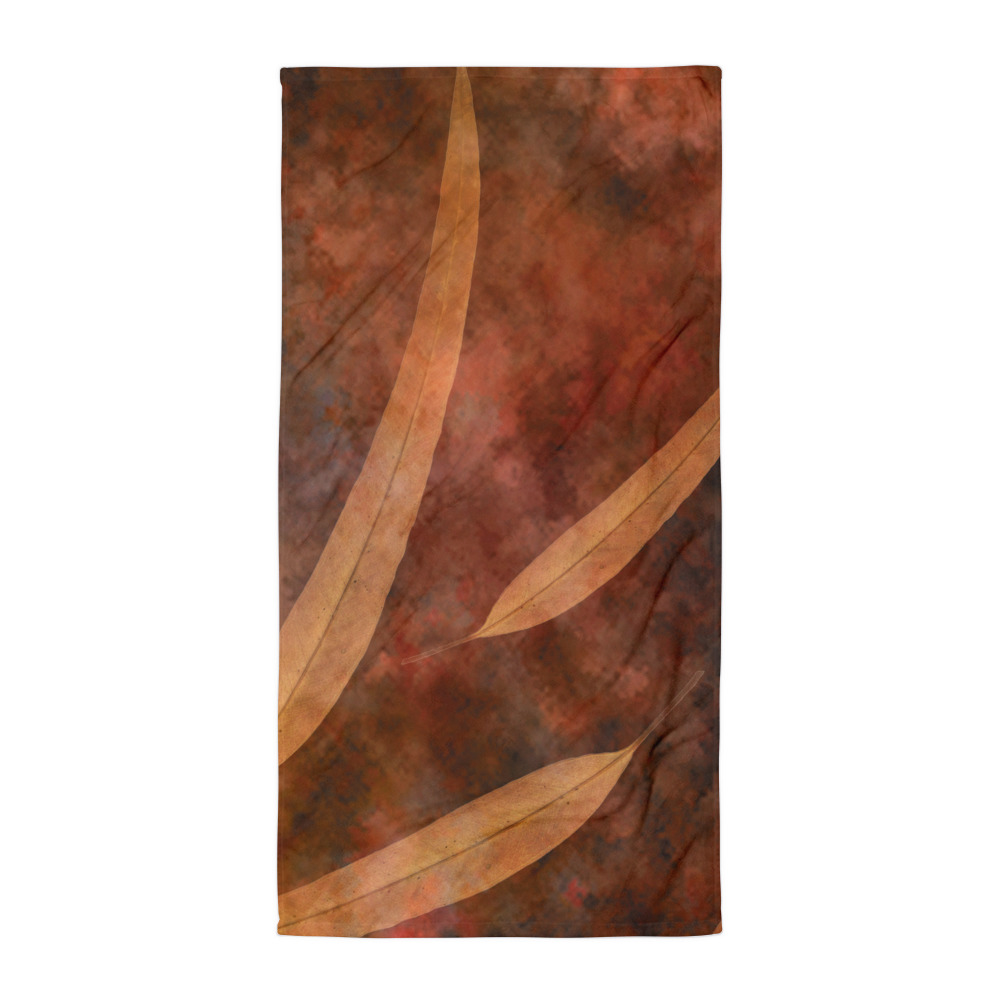 Beach Towel Dark Brown Leaves Leaf Beige Nature Art Print Old Antique