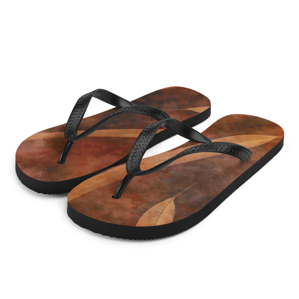 Flip-Flops Dark Brown Leaves Leaf Beige Nature Art Print Old Antique
